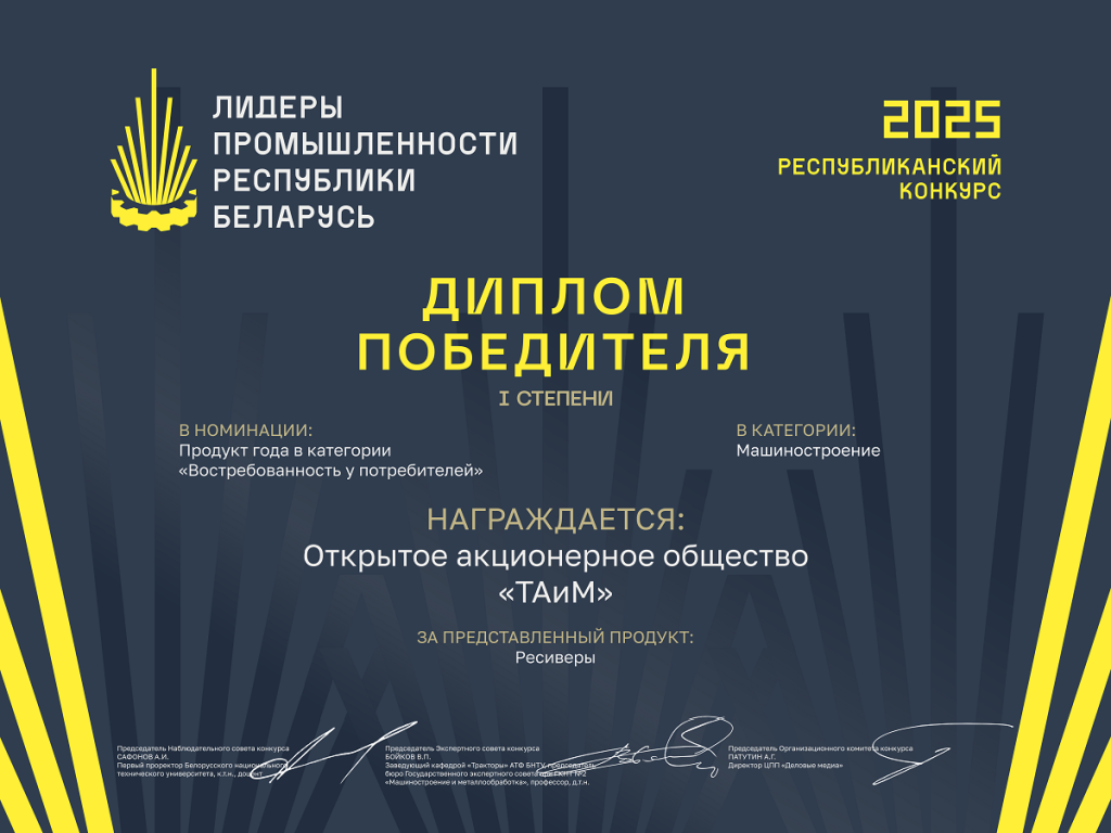 ОАО "ТАиМ" Победитель в номинации продукт года/ Востребованность у потребителей. Номинация "Ресивер"