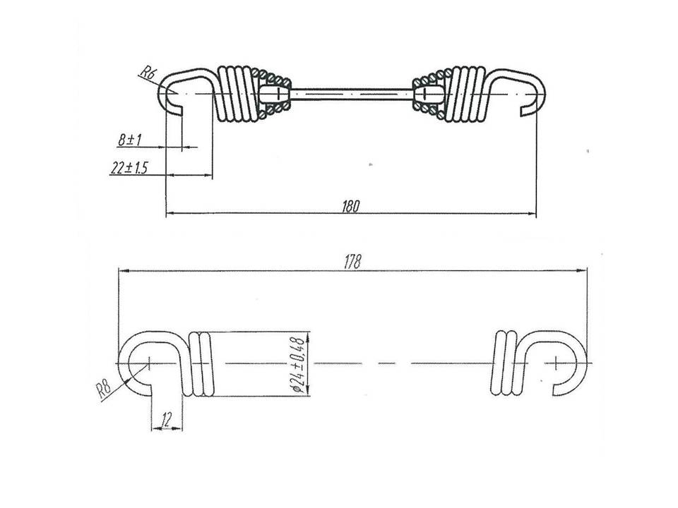 | 4370-3501034 | пружина растяжения | 180 | 24 | (294±49) Н | 196 мм |