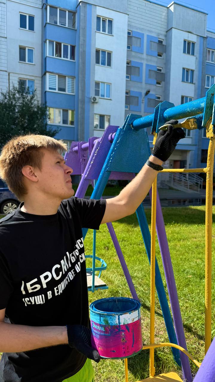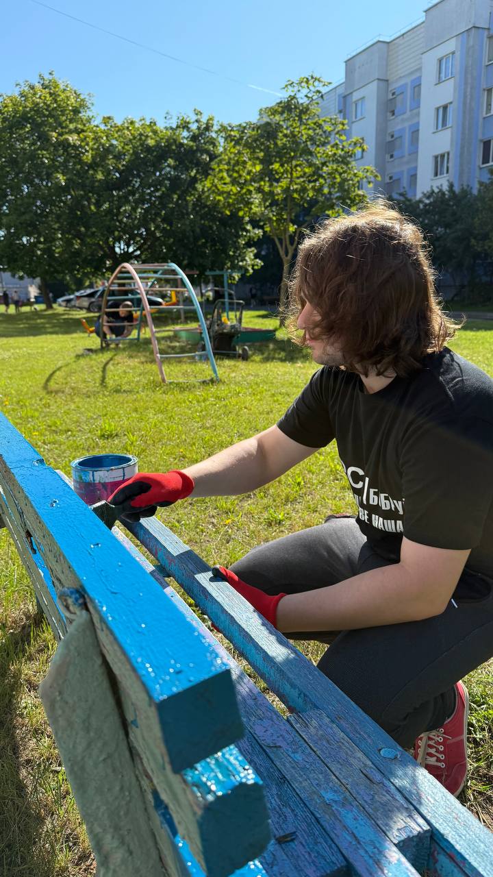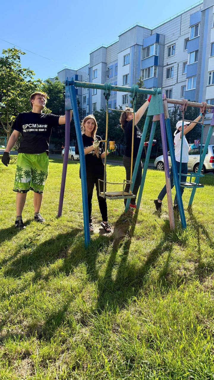 Первомайский районный комитет ОО «БРСМ» совместно с союзной молодежью ОАО «ТАиМ» и Первомайской районной организацией РОО «Белая Русь» обновляют детскую площадку по адресу: ул. Западная, 24.